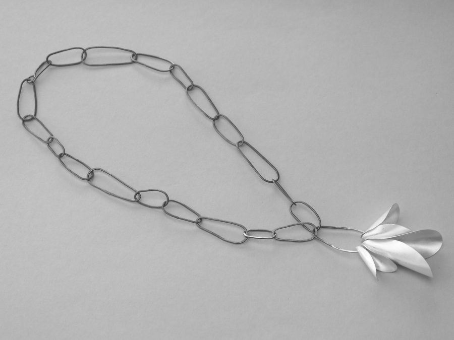 Crocus - Feinsilber 999, Silber 925 geschwärzt, Stahlseilcollier